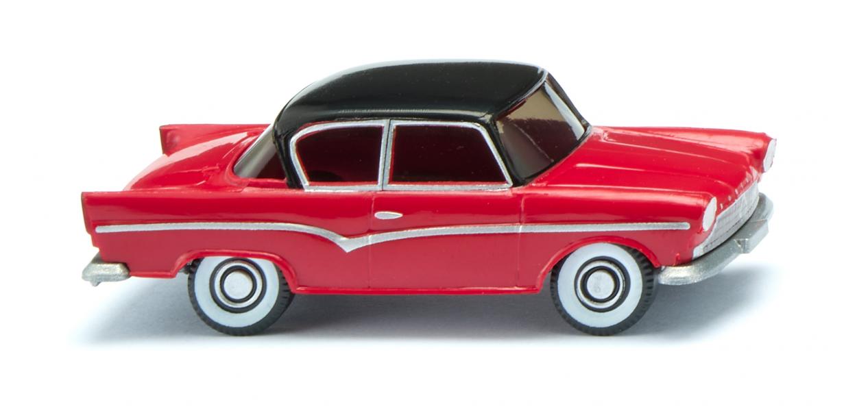 The Borgward Arabella ranks among the last and, at the same time, most ambitious passenger car developments ever undertaken by Bremen’s Borgward Group. Originally conceived under the name Lloyd Arabella, it was presented in 1959 and manufactured in different versions until 1963. The objective pursued with this model was to complement Lloyd’s existing small vehicles with a significantly more adult vehicle in a bid to enter into the lower middle class of the automotive world. The Arabella was a completely new development, boasting a design that bore next to no resemblance to previous Lloyd models. The vehicle was intended to elevate a small car to the level of comfort and the safety features found in higher classes. One particular feature was the newly developed four-cylinder boxer engine with water cooling, which was arranged as a front-wheel drive unit in front of the front axle. This power plant made the Arabella Lloyd’s first and only model with a four-cylinder engine. WIKING unveils the miniaturised version of the Borgward Arabella with an elegant colour combination of a carmine red body paired with a black roof. Regular production ended with the collapse of the Borgward Group in 1961. However, between 1962 and 1963, vehicles were still assembled in small numbers from existing parts and sold as the final Borgward Arabella.