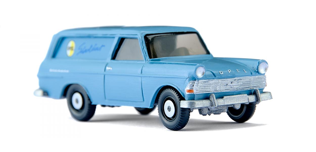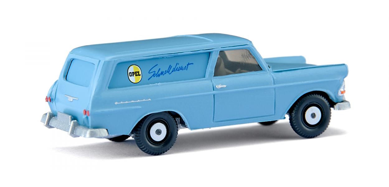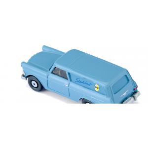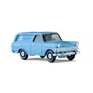 The Opel Rekord Caravan of the model year 1960 encapsulates an impressive combination of technology, service ideas, and Economic Miracle optimism. Operating as an on-call vehicle of Opel’s express service, it typified reliability and customer proximity – values that fortified Opel’s reputation as a modern high-volume brand at the time. The service car was based on the Rekord P2, which boasted generous panoramic windows, clear lines and an American-influenced design that made it one of the most popular mid-size cars of its era. The Caravan trim of the Rekord passenger vehicle married comfort with outstanding everyday usability. The spacious cargo space offered enough room for tools, spare parts and service equipment - ideal conditions for mobile workshop use. The unmistakable look of the Opel Express Service turned the caravan into a rolling flagship of the brand. It was deployed wherever quick assistance was needed: in the event of breakdowns or maintenance work or for short-term repairs directly at the customer. WIKING has furnished their pastel blue model of the original with an authentic appearance - including the contemporary Opel trademark, the express service lettering, and the “tinted” station wagon portion. And, naturally, with no C-pillar. Today, this classic service vehicle recalls a time when customer service was visible, personal, and mobile. The Caravan thus serves as an authentic representative of the everyday automobiles that shaped the history of the Economic Miracle decades.