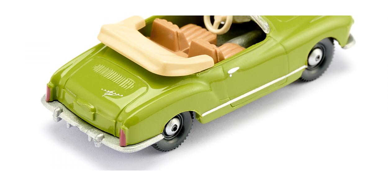 Nun kommt es endlich – das VW Karmann Ghia Cabriolet. Immer wieder hatte es zu Lebzeiten des WIKING-Gründers briefliche Sammlerwünsche gegeben, die aus dem Karmann Ghia gern ein Duo gemacht hätten. Selbst der Modellentwurf des eigenen Werkzeugbauers Gruttke konnte Fritz Peltzer nicht erweichen. Jetzt hat WIKING die Karosserie umgearbeitet – entstanden ist aus historischen Formen ein wirklicher Klassiker mit der WIKING-Handschrift von Modellbaumeister Alfred Kedzierski. Alles im Stil jener Produktionsjahre. Der Karmann Ghia zählt als Coupé und Cabrio gleichermaßen zu den elegantesten Klassikern der deutschen Automobilgeschichte. Es verbindet italienisches Design mit deutscher Großserientechnik und wurde zu einer Stil-Ikone der Nachkriegszeit. Die Idee war rasch mit der Karosseriekreation der sportlichen Eleganz auf Käfer-Basis umschrieben. 1953 war es zur entscheidenden Zusammenarbeit mit der italienischen Carrozzeria Ghia in Turin gekommen. Unter maßgeblicher Beteiligung von Luigi Segre entstand ein Prototyp, der Käfer-Technik mit einer außergewöhnlich eleganten Karosserie verband. Der Karmann Ghia Typ 14 wurde 1955 zunächst als Coupé vorgestellt, zwei Jahre später folgte das Cabriolet, das sich schnell großer Beliebtheit erfreute.