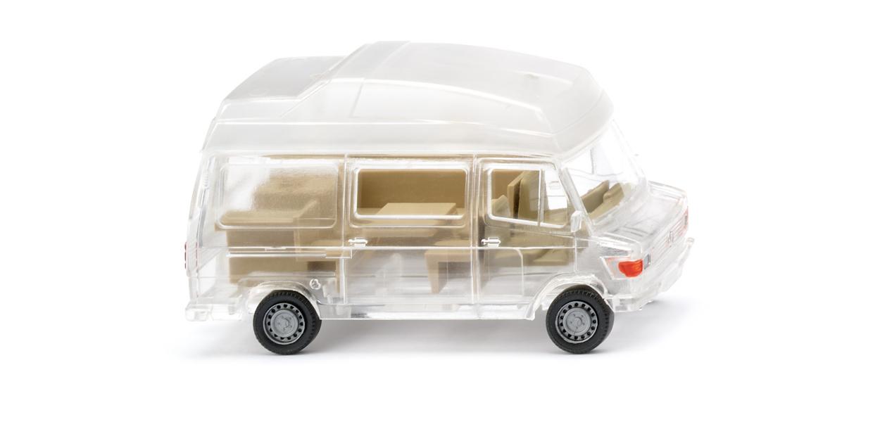 Es ist schon ein eigenständiges Sammelthema geworden, wenn es um die transparenten WIKING-Modelle geht. Lange Jahre wurden sie als Jahresedition in der SIKU//WIKING Modellwelt vorgestellt, jetzt gibt es eine Fortsetzung innerhalb der Modellpflege. Dazu hat sich WIKING diesmal des Mercedes-Benz Wohnmobils angenommen. Für die Enthusiasten der Traditionsmarke wird damit die ganze modellbauerische Architektur in all ihren konstruktiven Feinheiten sichtbar. Lediglich das Interieur von Sitzen und Wohnmobilausstattung wurde farblich abgesetzt, so dass der Blick durch die Karosserie aufs Innenleben frei wird. Was bei den normalen Abspritzungen nicht erkennbar ist, wird beim Transparent-Modell sehr schön sichtbar. Denn das Hochdach erfährt lediglich durch entsprechende Halte- und Klebepunkte seinen Aufsatz auf die normale Transporterkarosserie. Damit reiht sich das Wohnmobil stimmig in diese besondere WIKING-Reihe ein.